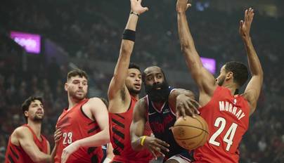快船逆转开拓者 哈登遭多人包夹