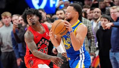 NBA勇士加时不敌猛龙 库里持球犯规