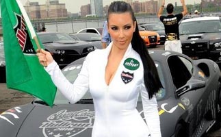 卡黛珊化身赛车宝贝 白色紧身衣秀丰乳肥臀
