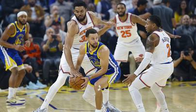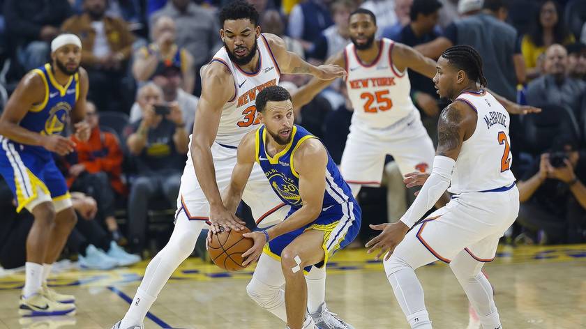 NBA-勇士VS尼克斯 库里遭多人围抢