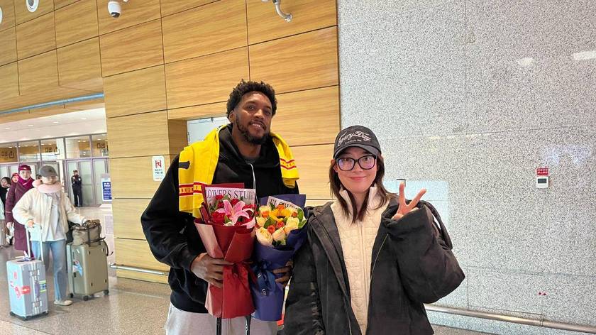 吉林外援贾马尔-盖利抵达长春 与球迷合影