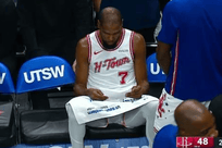 火箭队崩盘,申京伤退,杜兰特陷犯规麻烦,场下看数据表很无奈