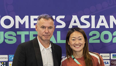 中国女足亚洲杯首战发布会 吴海燕合影米利西奇(图)