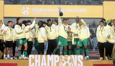中超-国安全队登台举起冠军奖杯 2026首冠归属北京(组图)
