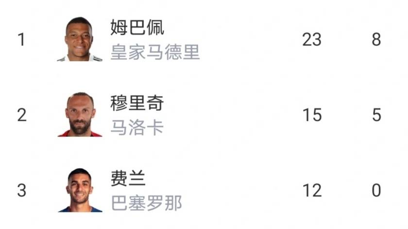 西甲最新积分榜:黄潜4-1狂胜,追平马竞,姆巴佩领跑射手榜