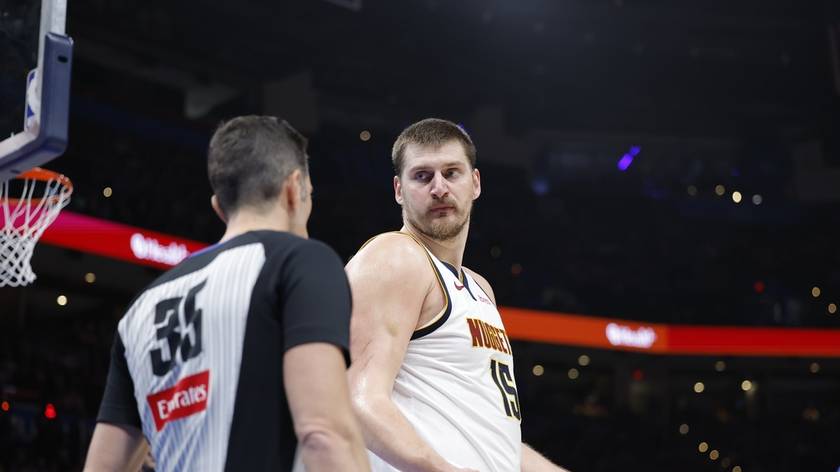 NBA-掘金VS雷霆 约基奇不满判罚