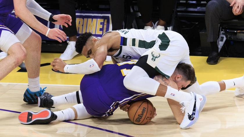 NBA-湖人不敌雄鹿 东契奇与字母哥争抢球权