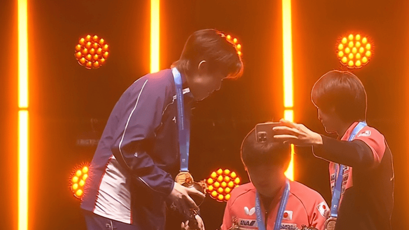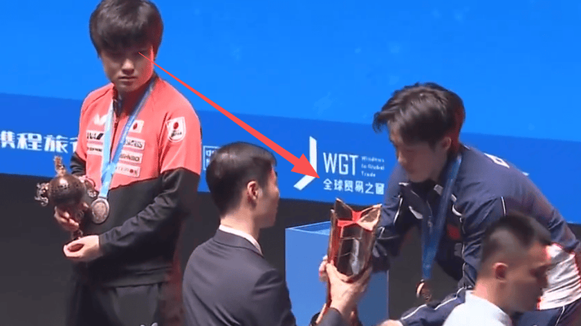 张本智和主动靠边站!不敢和王楚钦同台自拍,颁奖仪式上国乒孤独