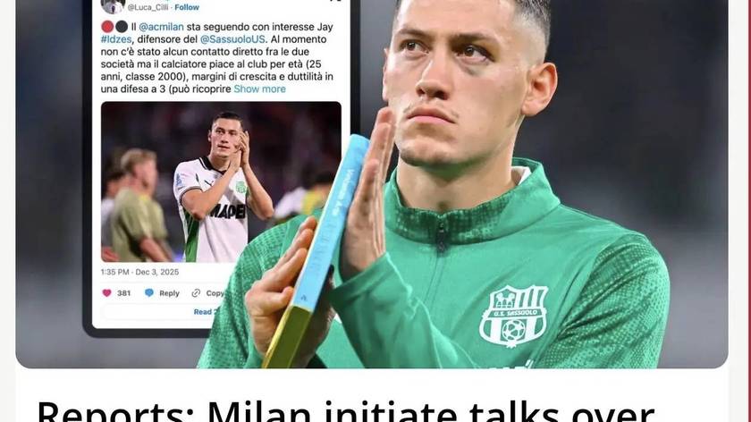 意甲媒体透露:米兰补强后防线时出现新名字:萨索洛的杰伊·伊德泽斯