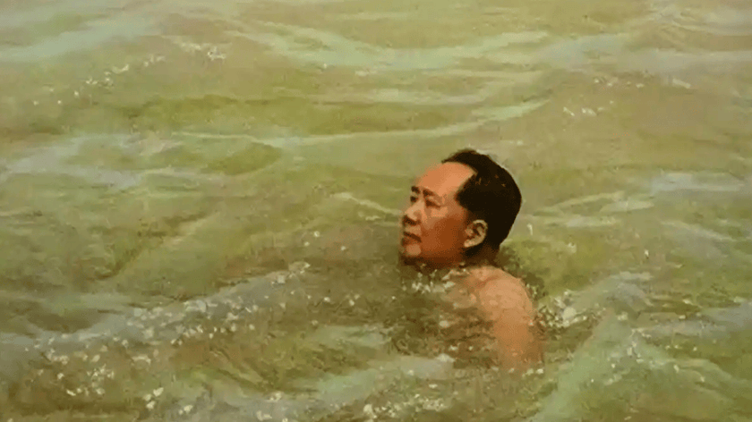1974年,毛主席最后一次游泳,已经疲态尽显,身旁有人保护