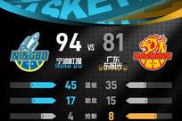 宁波队史首胜广东! 徐杰0分伤退奎因24+8+6